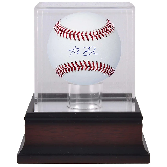 Baseball autographié par Alec Bohm des Philadelphia Phillies et vitrine de présentation de baseball en acajou