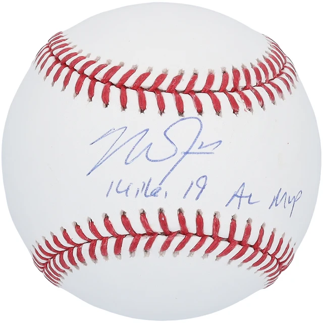 Baseball autographié par Mike Trout des Los Angeles Angels avec l'inscription « 14,16,19 AL MVP »