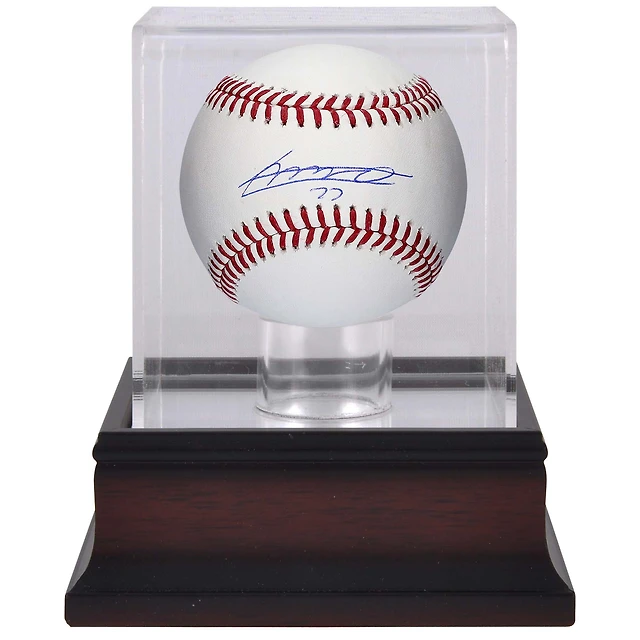 Baseball autographié par Vladimir Guerrero Jr. des Blue Jays de Toronto et vitrine de présentation de baseball en acajou