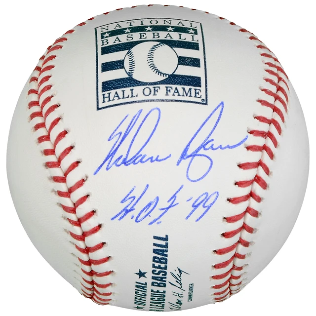 Baseball avec logo du Temple de la renommée autographié par Nolan Ryan des Texas Rangers avec inscription « HOF 99 »