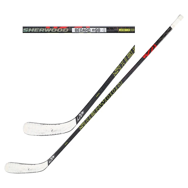 Bâton Sherwood noir autographié par Connor Bedard des Blackhawks de Chicago lors de la saison 2024-25 de la LNH - NR81048998