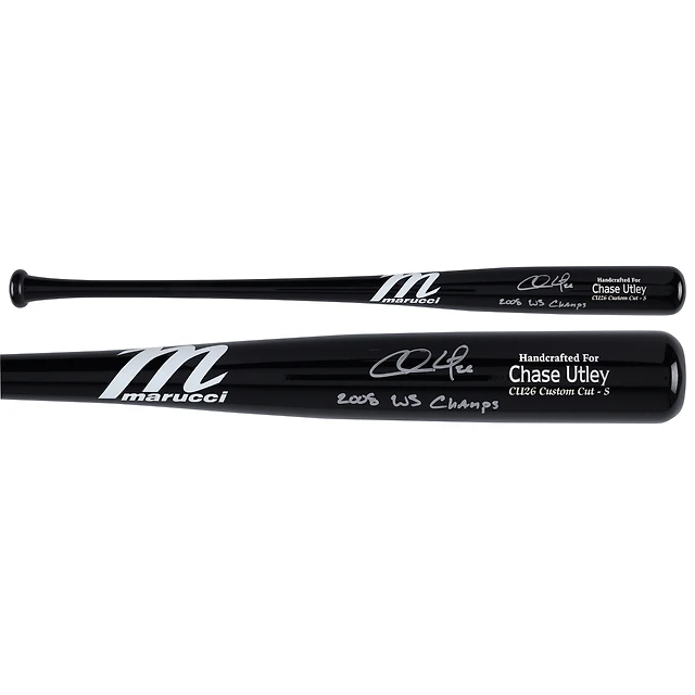 Batte de baseball Marucci autographiée par Chase Utley des Phillies de Philadelphie avec l'inscription « 2008 WS Champs »