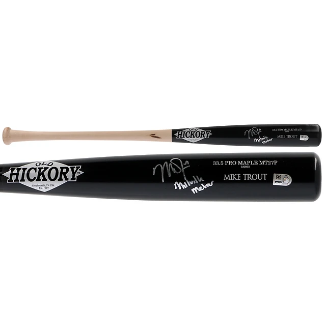 Batte de baseball Old Hickory autographiée par Mike Trout des Los Angeles Angels avec l'inscription « Millville Meteor »