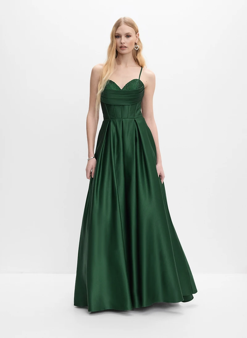 Beaded Corset Satin Gown