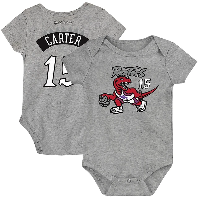 Bébé Mitchell & Ness Vince Carter gris chiné Toronto Raptors Hardwood Classics Body avec nom et numéro