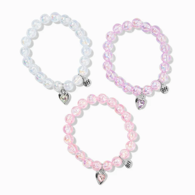 Best Friends Heart Charm Beaded Stretch Bracelets - 3 Pack