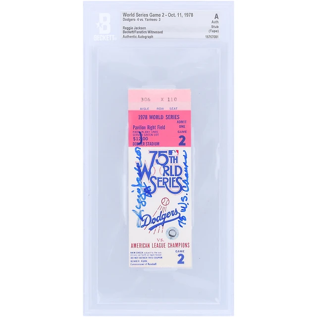 Billet 9 authentifié avec l'inscription « 78 WS Champs » signé par Reggie Jackson des Yankees de New York lors du deuxième match des World Series de 1978, Beckett/Fanatics Witnessed