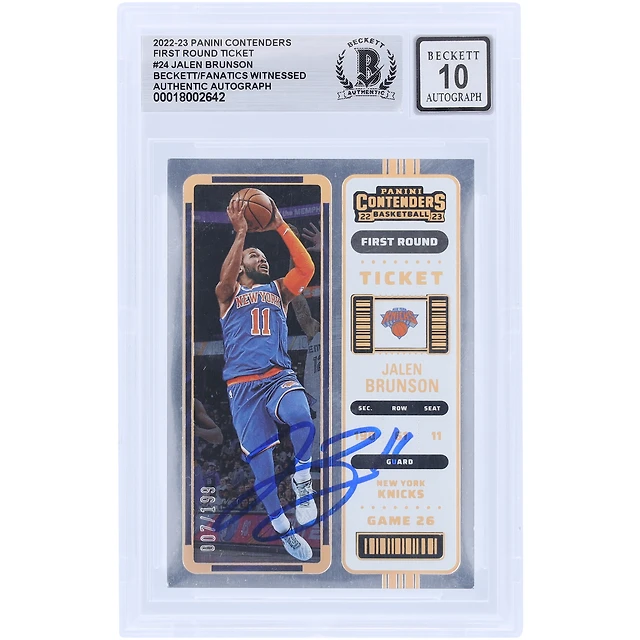 Billet autographié du premier tour des Panini Contenders 2022-23 de Jalen Brunson, New York Knicks, n° 24 #/199, carte 10 authentifiée et témoin des fanatiques de Beckett