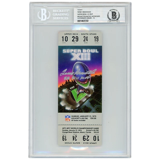 Billet autographié par Terry Bradshaw des Pittsburgh Steelers du 21 janvier 1979 avec l'inscription « SB XIII MVP » - Beckett/Fanatics Witnessed 10