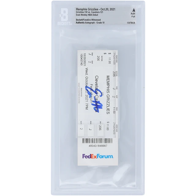 Billet de début NBA autographié par Evan Mobley pour les Cleveland Cavaliers - BAS Authenticated Graded 10