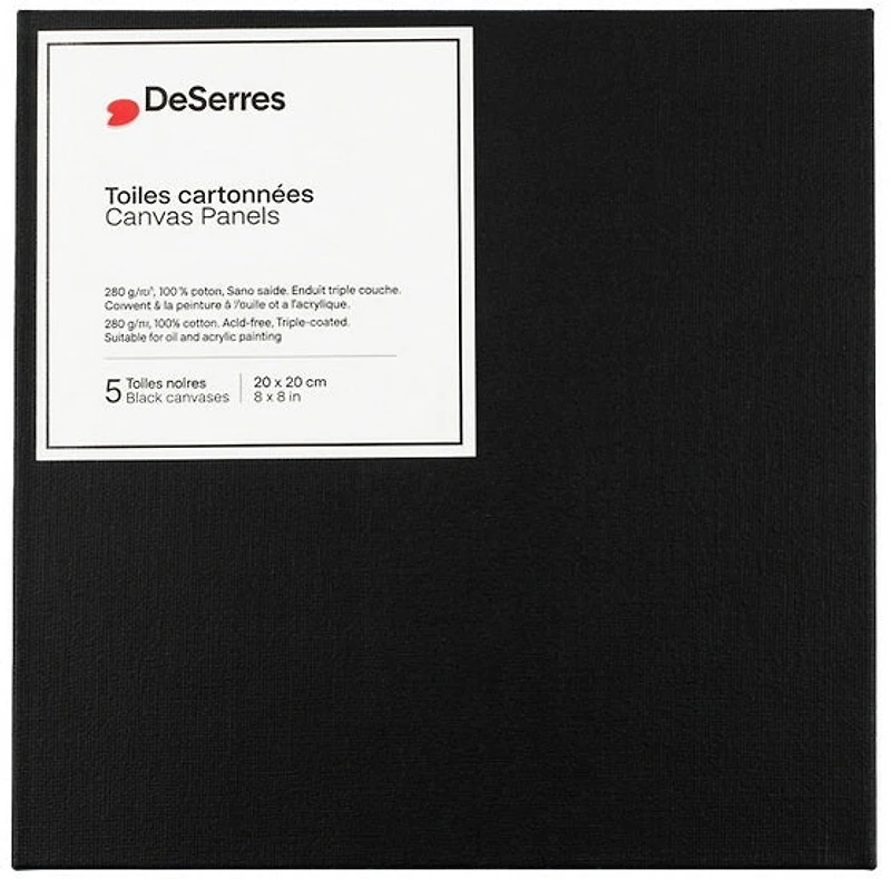 Ces toiles cartonnées noires DeSerres au format 20 x 20 cm offrent une base idéale pour créer des œuvres au contraste intense. Appliquez peinture acrylique ou à l’huile et faites ressortir chaque couleur avec éclat sur ce fond profond. Leur surface en coton sans acide assure une bonne adhérence et un rendu durable. Utilisez ce format polyvalent pour expérimenter, affiner votre technique et réaliser des créations modernes qui captent immédiatement le regard!