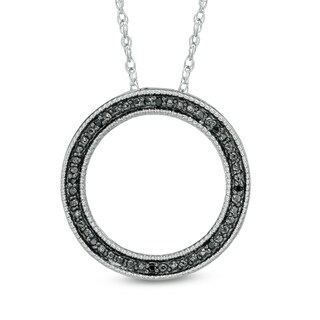 Black Diamond Accent Circle Pendant in Sterling Silver