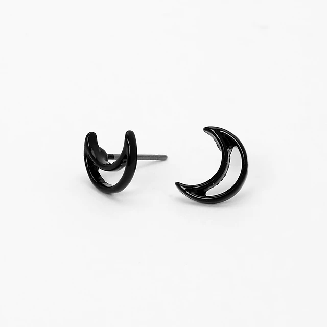 Black Open Moon Stud Earrings
