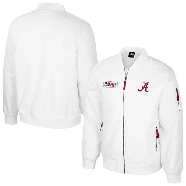 Blouson aviateur entièrement zippé Colosseum Alabama Crimson Tide White Rabbit pour homme