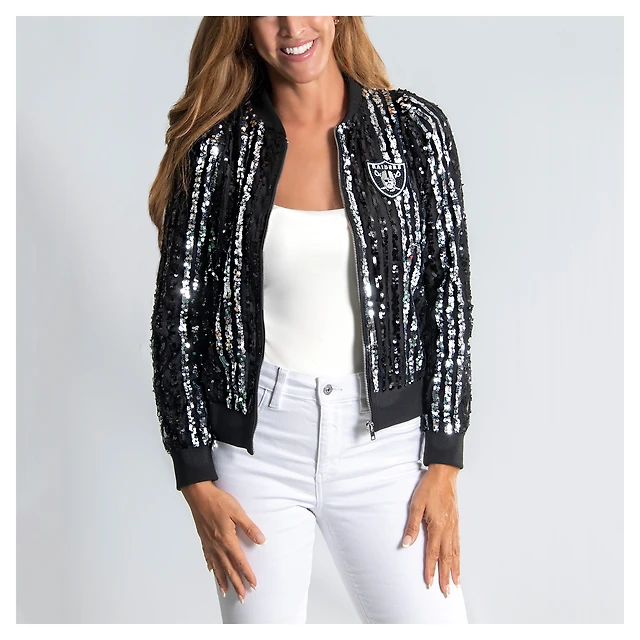 Blouson aviateur zippé à rayures et sequins pour femme Cuce Black Las Vegas Raiders