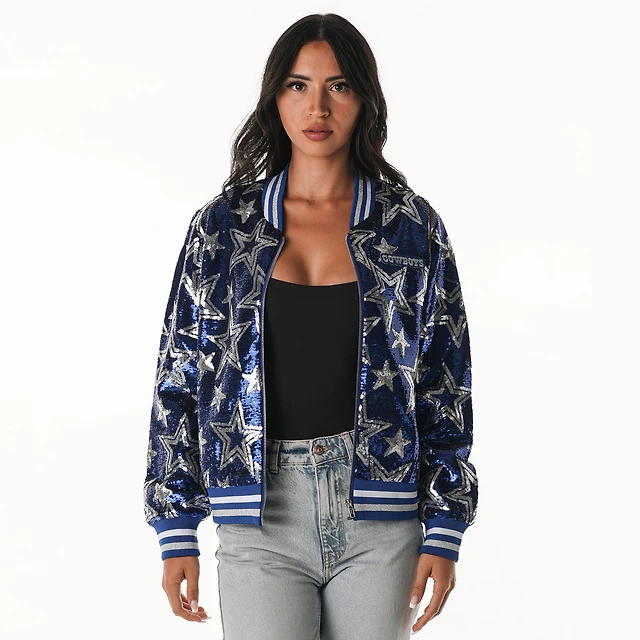 Blouson aviateur zippé à sequins Royal Dallas Cowboys pour femme The Wild Collective
