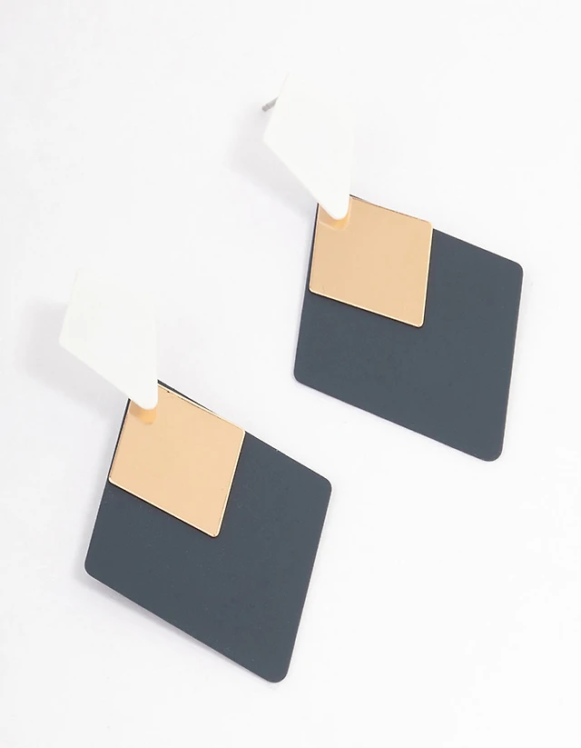 Blue Coated Geometric Shape Drop Earrings