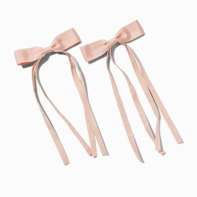 Blush Pink Grosgrain Ribbon Long Tail Hair Bow Clips - 2 Pack