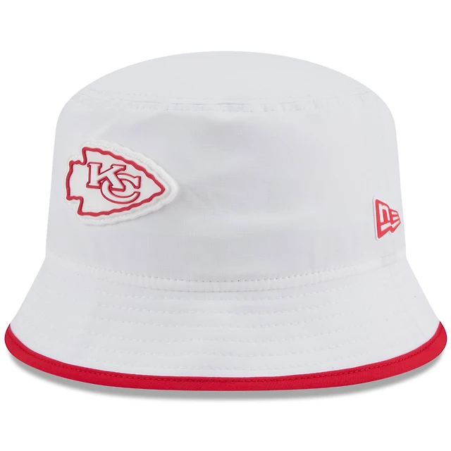 Bob New Era extensible blanche pour homme, camp d'entraînement NFL 2025 des Kansas City Chiefs