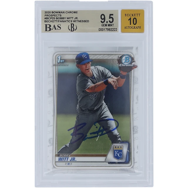 Bobby Witt Jr. Kansas City Royals Autographié 2020 Bowman Chrome Prospect 1er Bowman #BCP-25 Beckett Fanatics Witnessed Authenticated 9.5/10 Card