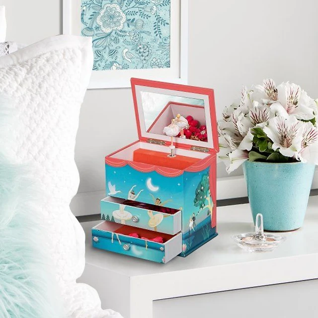 Mele and Co Mariel Musical Ballerina Jewellery Box - Blue and Coral