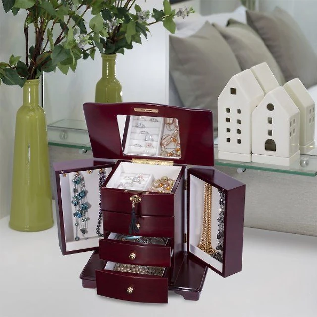 Boîte à montres en bois « Waverly » avec plateau en verre par Mele and Co - Rouge cerise