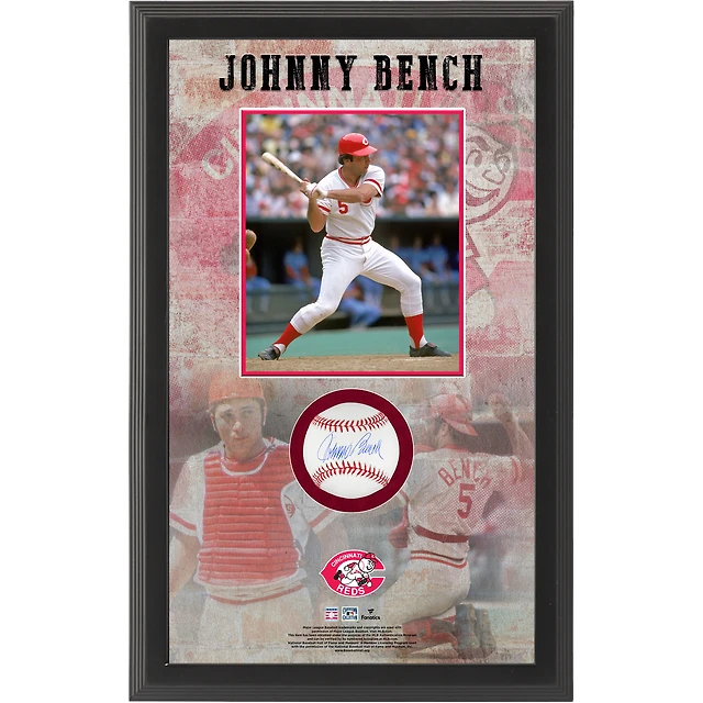 Boîte à ombre de baseball autographiée par Johnny Bench des Cincinnati Reds