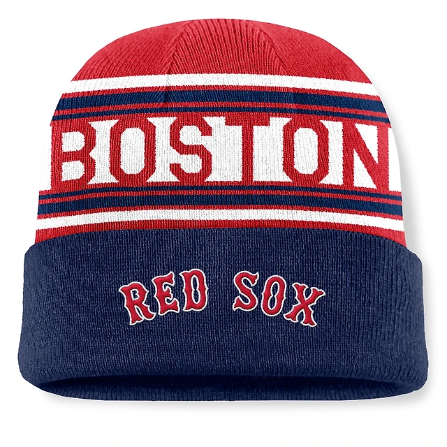 Bonnet en tricot à revers à rayures bleu marine Boston Red Sox Fundamental Team pour homme Fanatics