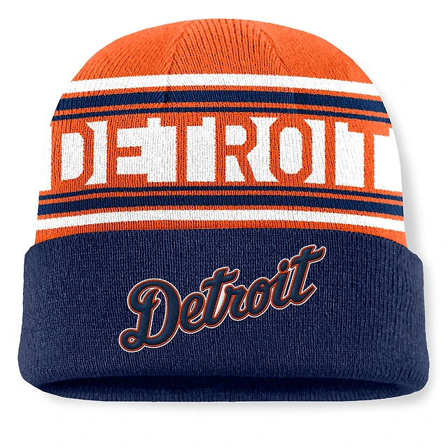 Bonnet en tricot à revers à rayures fondamentales pour hommes des Detroit Tigers de la marque Fanatics bleu marine