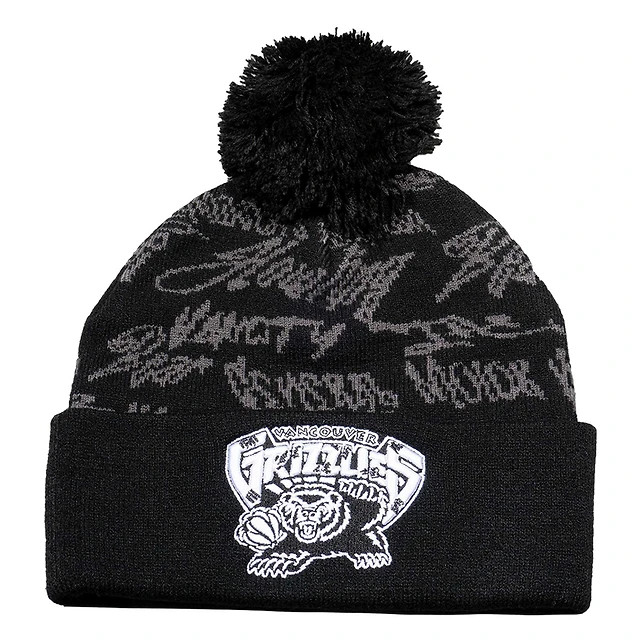 Bonnet en tricot à revers avec mots significatifs des Grizzlies de Vancouver noirs Mitchell & Ness pour hommes avec pompon