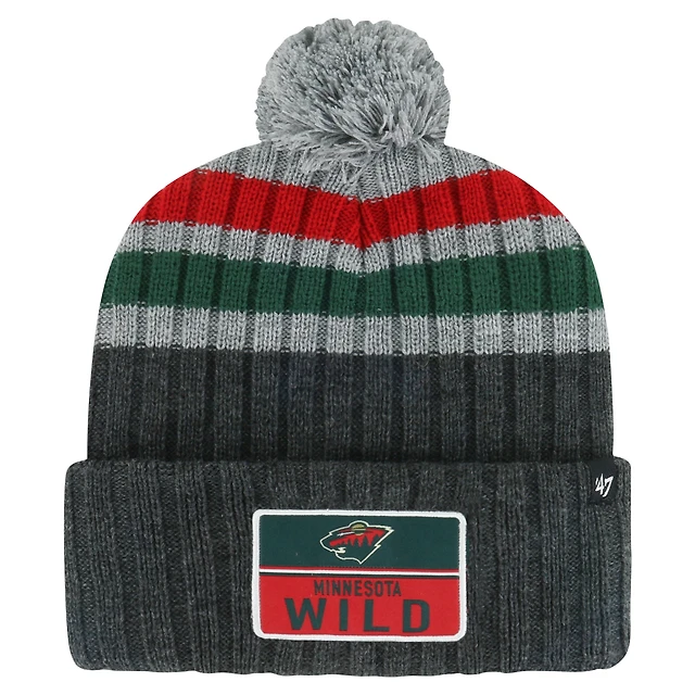 Bonnet en tricot à revers avec patch Minnesota Wild Stack '47 gris pour hommes avec pompon