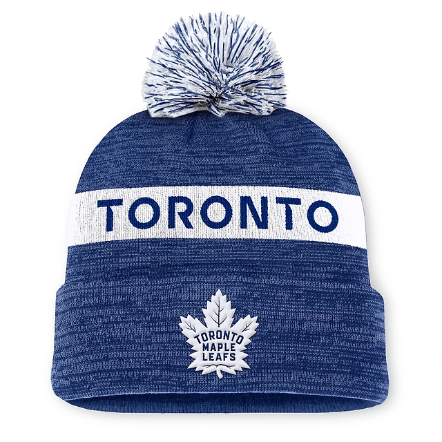 Bonnet en tricot à revers avec pompon authentique Pro Rink des Maple Leafs de Toronto Fanatics bleu pour homme