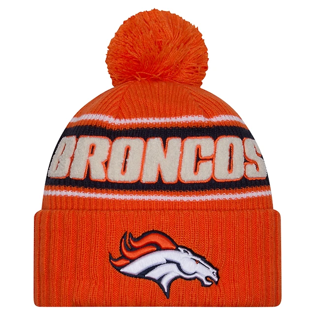 Bonnet en tricot à revers avec pompon Denver Broncos 2024 Sideline Sport Orange New Era pour jeune