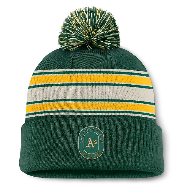 Bonnet en tricot à revers avec pompon et patch Fundamental Oakland Athletics vert Fanatics pour homme