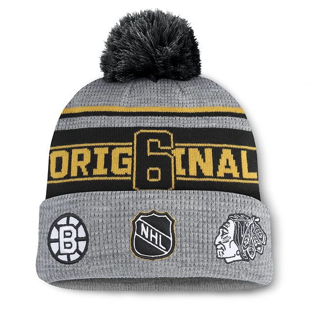 Bonnet en tricot à revers avec pompon Fanatics Original 6 Lumberjack pour homme gris