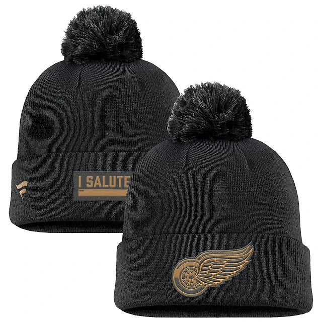 Bonnet en tricot à revers avec pompon pour homme Fanatics Black Detroit Red Wings Military Appreciation