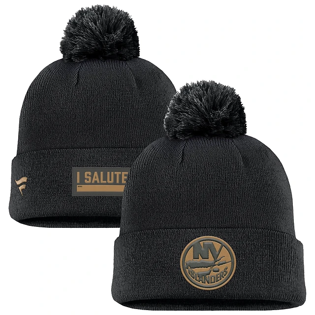 Bonnet en tricot à revers avec pompon pour homme Fanatics Black New York Islanders Military Appreciation