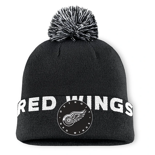 Bonnet en tricot à revers avec pompon pour homme Fanatics Red Wings de Detroit Fundamental Black