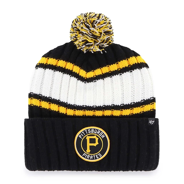 Bonnet en tricot à revers avec pompon pour homme, modèle 47, noir, des Pirates de Pittsburgh