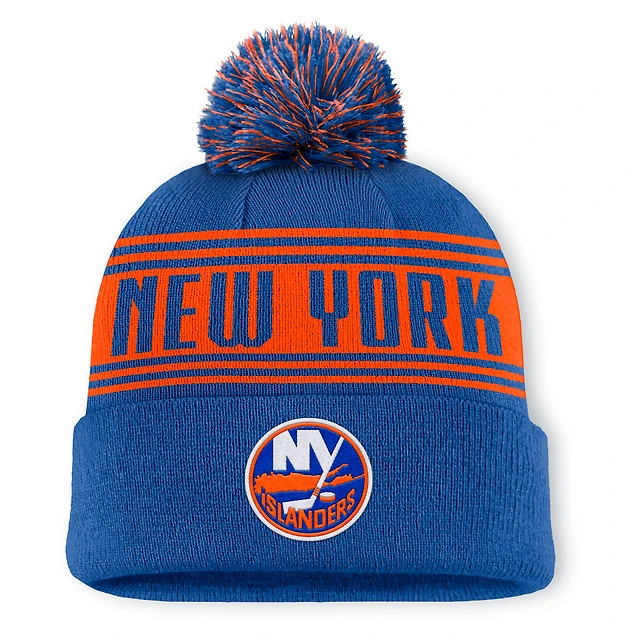 Bonnet en tricot à revers avec pompon pour hommes Fanatics Royal New York Islanders Fundamental