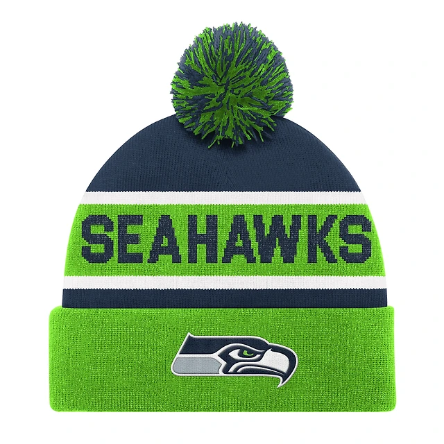 Bonnet en tricot à revers avec pompon unisexe Starter Neon Green Seattle Seahawks