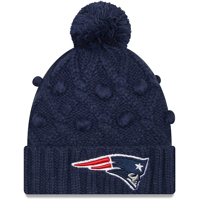 Bonnet en tricot à revers avec pompons pour femme New England Patriots bleu marine New Era - Bonnet