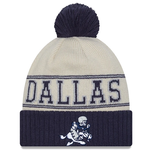 Bonnet en tricot à revers avec pompons pour homme Dallas Cowboys 2023 Sideline Historic bleu marine New Era