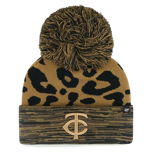 Bonnet en tricot à revers avec rosette léopard '47 Minnesota Twins pour femmes avec pompon