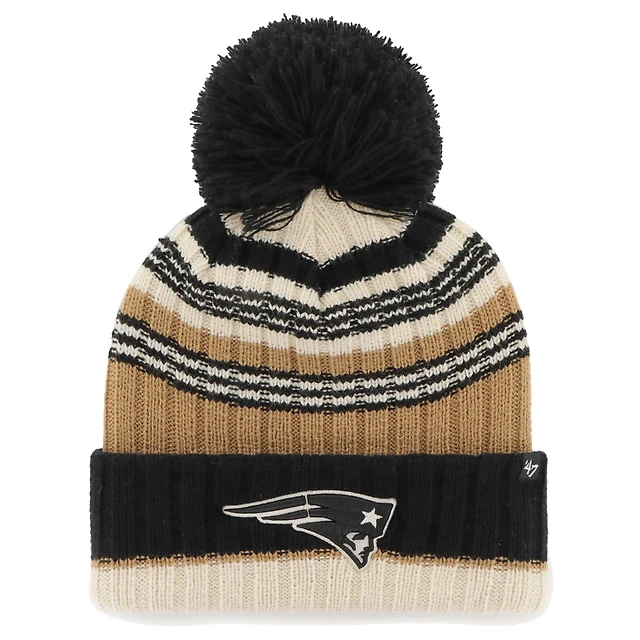 Bonnet en tricot à revers Barista '47 Natural New England Patriots pour femmes avec pompon