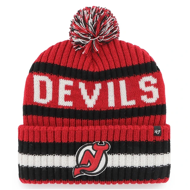 Bonnet en tricot à revers Bering des Devils du New Jersey '47 rouge pour homme avec pompon