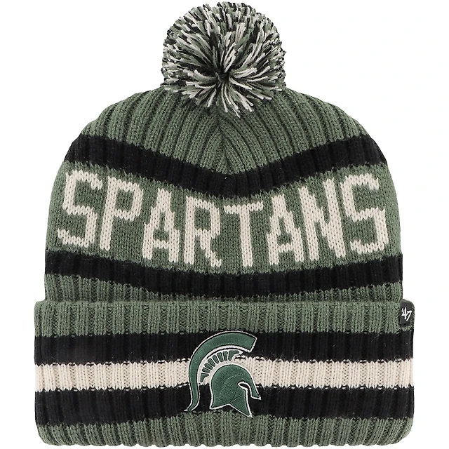 Bonnet en tricot à revers Bering pour hommes, vert Michigan State Spartans OHT, appréciation militaire, avec pompon, '47