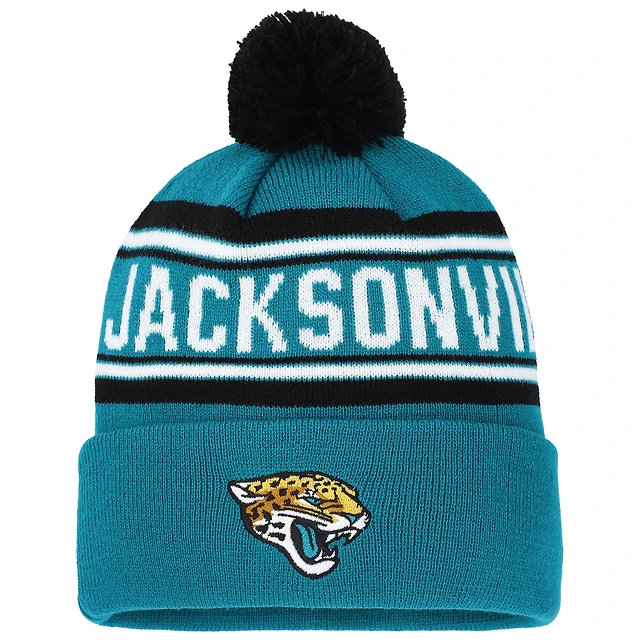 Bonnet en tricot à revers en jacquard bleu sarcelle avec pompon des Jaguars de Jacksonville pour enfants d'âge préscolaire