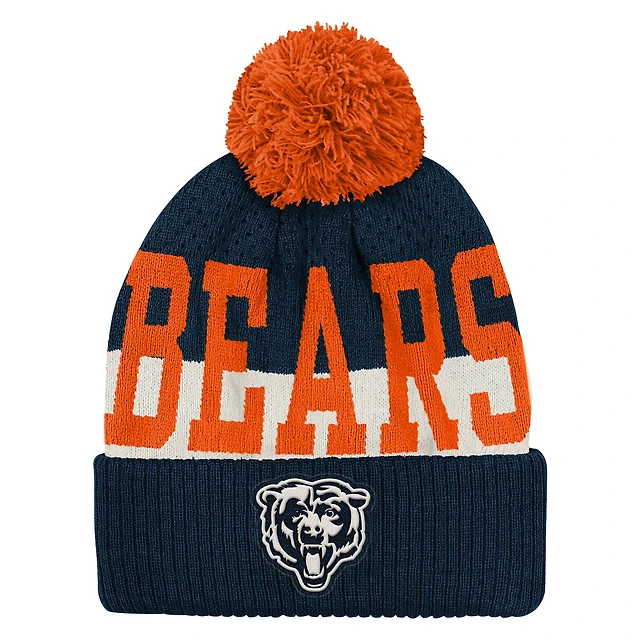 Bonnet en tricot à revers et pompon bleu marine Chicago Bears pour jeunes Outerstuff