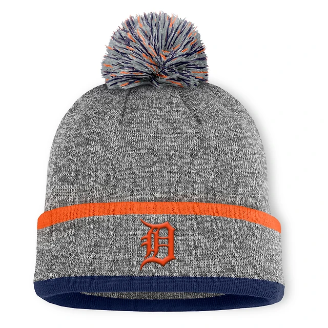 Bonnet en tricot à revers et pompon Fanatics Backstop gris chiné pour homme des Detroit Tigers